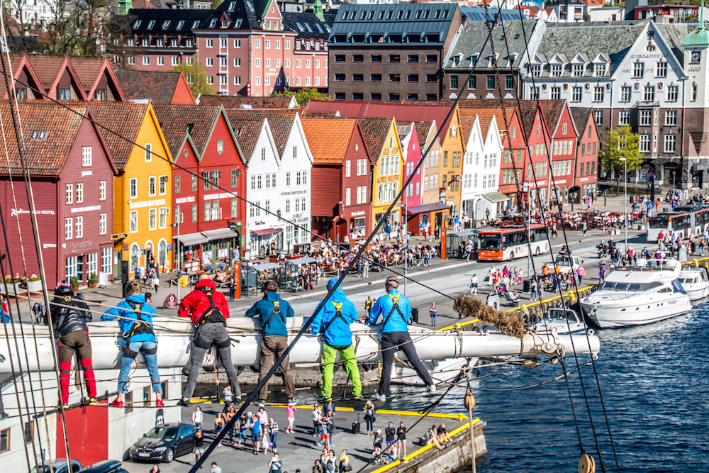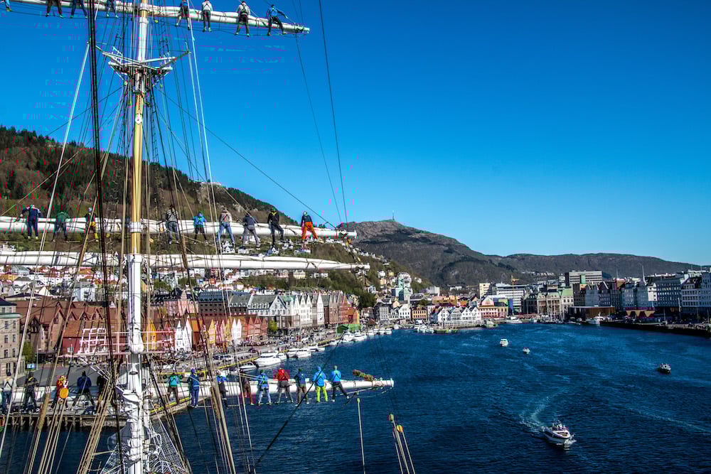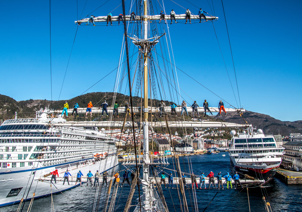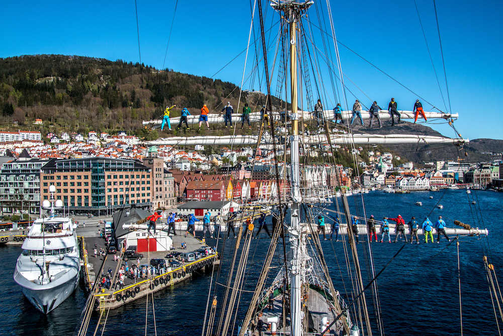 Wir befanden uns in den Fjorden von Norwegen, auf einem Schiff, das im Jahr 1914 zum ersten Mal zu Wasser gelassen wurde. Der Dreimaster, der einige Jahre als Trainingsschiff für die Marine verbracht hat, hatte nun eine besondere Aufgabe. Nämlich 120 Skifahrer eine Unterkunft zu bieten.