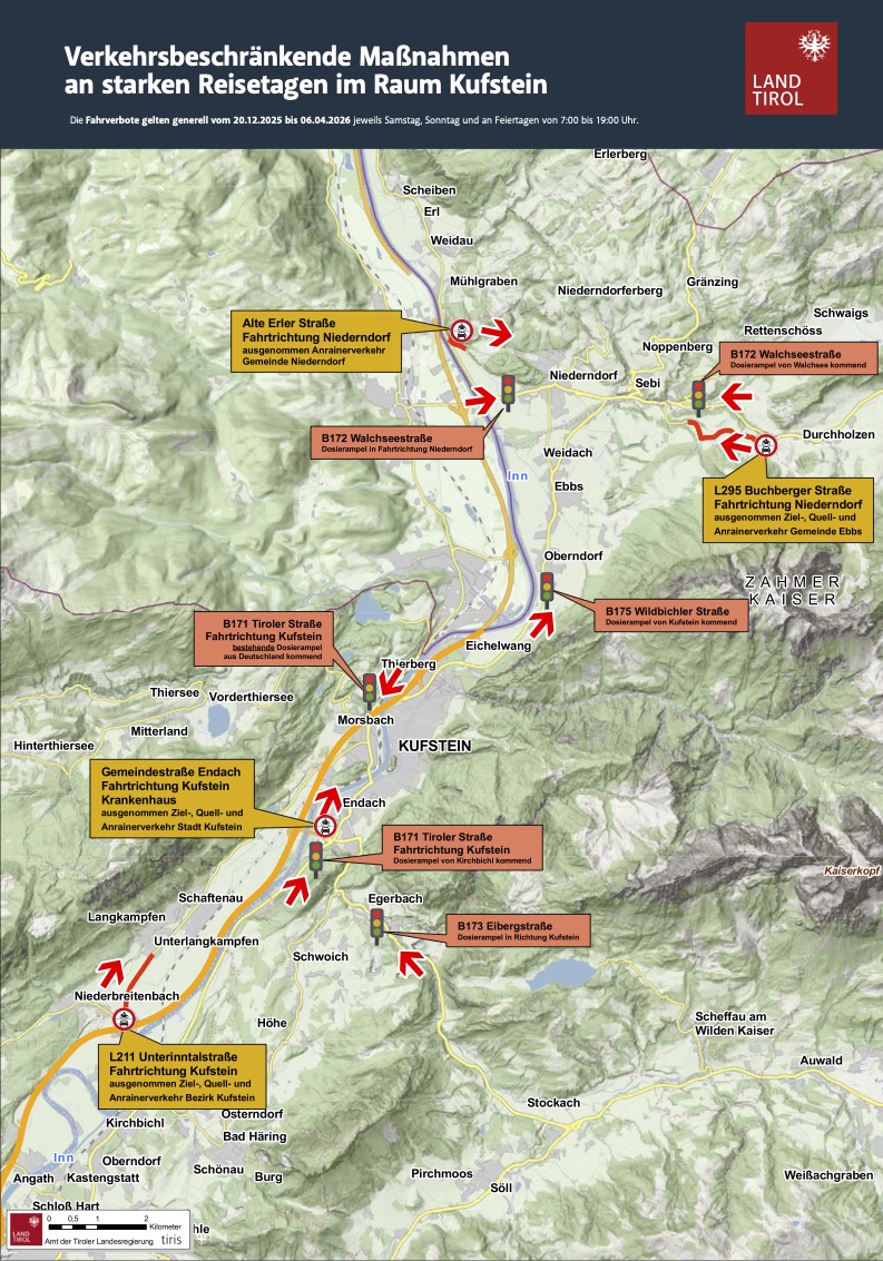 - Wo: Die Fahrverbote gelten unter anderem in den Regionen Schwaz, Imst, Kufstein, Innsbruck Land und Reutte.